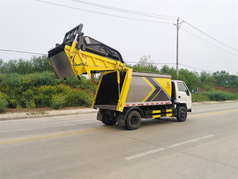 上裝配置:垃圾箱容積:6方,新款平面弧形廂體,廂體材料為武鋼優(yōu)質(zhì)碳鋼,PLC一鍵操作**,手電一體操作模式,兩側(cè)雙電控,帶駕駛室內(nèi)操作,底板支撐加強(qiáng),雙向壓縮,開(kāi)放式易清潔污水箱。壓縮式垃圾車采用機(jī)電液一體化技術(shù),借助機(jī)、電、液聯(lián)合自動(dòng)**系統(tǒng)、電腦**、手動(dòng)操作系統(tǒng),通過(guò)填裝器和推鏟等專用裝置,實(shí)現(xiàn)垃圾倒入、壓碎或壓扁、強(qiáng)力裝填,把垃圾擠入車廂并壓實(shí)和推卸,污水全部進(jìn)入污水廂,解決了垃圾運(yùn)輸過(guò)程中的二次污染的問(wèn)題。壓縮式垃圾車具有自動(dòng)反復(fù)壓縮以及蠕動(dòng)壓縮功能,壓縮比高、密封性好、裝載量大﹑操作方便、環(huán)保性好﹑整車?yán)霉β矢叩葍?yōu)點(diǎn)。作業(yè)自動(dòng)化,垃圾收集方式簡(jiǎn)便、高效。后翻轉(zhuǎn)機(jī)構(gòu)選裝:1、掛塑料桶式翻轉(zhuǎn)機(jī)構(gòu);2、掛鐵桶式翻轉(zhuǎn)機(jī)構(gòu);3、擺臂式翻轉(zhuǎn)機(jī)構(gòu); 4、簸箕斗式翻轉(zhuǎn)機(jī)構(gòu)。