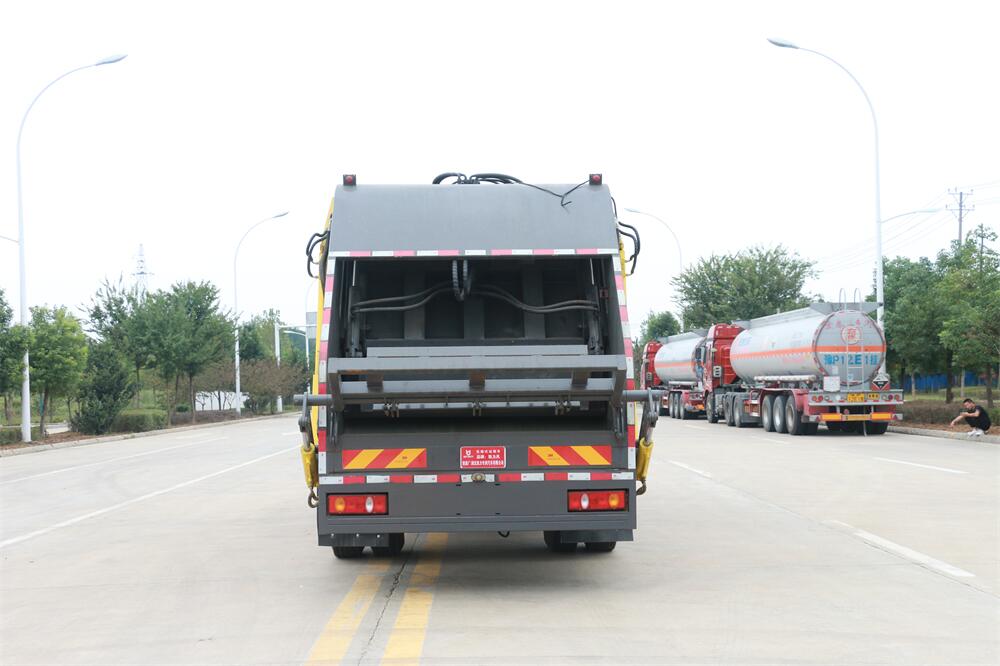 上裝配置:垃圾箱容積:12方,新款平面弧形廂體,廂體材料為武鋼優質碳鋼,PLC一鍵操作**,手電一體操作模式,兩側雙電控,帶駕駛室內操作,底板支撐加強,雙向壓縮,開放式易清潔污水箱。壓縮式垃圾車采用機電液一體化技術,借助機、電、液聯合自動**系統、電腦**、手動操作系統,通過填裝器和推鏟等專用裝置,實現垃圾倒入、壓碎或壓扁、強力裝填,把垃圾擠入車廂并壓實和推卸,污水全部進入污水廂,解決了垃圾運輸過程中的二次污染的問題。壓縮式垃圾車具有自動反復壓縮以及蠕動壓縮功能,壓縮比高、密封性好、裝載量大﹑操作方便、環保性好﹑整車利用功率高等優點。作業自動化,垃圾收集方式簡便、高效。后翻轉機構選裝:1、掛塑料桶式翻轉機構;2、掛鐵桶式翻轉機構;3、擺臂式翻轉機構; 4、簸箕斗式翻轉機構。