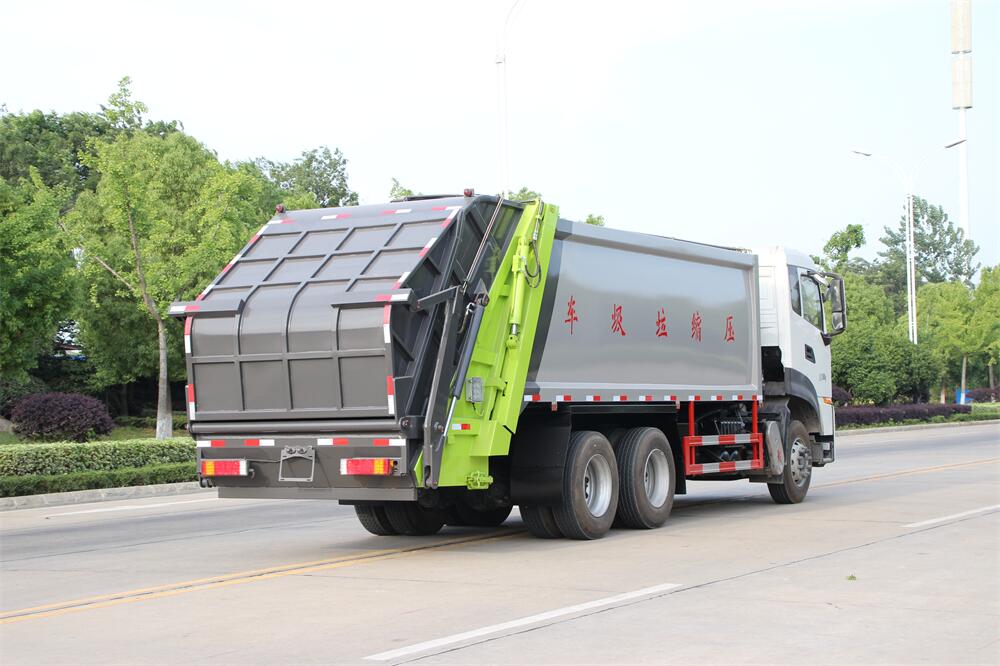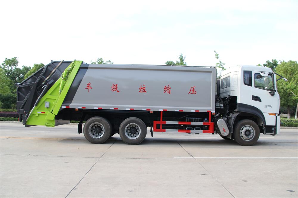 上裝配置:垃圾箱容積:18,20方選擇,新款平面弧形廂體,廂體材料為武鋼優(yōu)質(zhì)碳鋼,PLC一鍵操作**,手電一體操作模式,兩側(cè)雙電控,帶駕駛室內(nèi)操作,底板支撐加強(qiáng),雙向壓縮,開放式易清潔污水箱。壓縮式垃圾車采用機(jī)電液一體化技術(shù),借助機(jī)、電、液聯(lián)合自動(dòng)**系統(tǒng)、電腦**、手動(dòng)操作系統(tǒng),通過填裝器和推鏟等專用裝置,實(shí)現(xiàn)垃圾倒入、壓碎或壓扁、強(qiáng)力裝填,把垃圾擠入車廂并壓實(shí)和推卸,污水全部進(jìn)入污水廂,解決了垃圾運(yùn)輸過程中的二次污染的問題。壓縮式垃圾車具有自動(dòng)反復(fù)壓縮以及蠕動(dòng)壓縮功能,壓縮比高、密封性好、裝載量大﹑操作方便、環(huán)保性好﹑整車?yán)霉β矢叩葍?yōu)點(diǎn)。作業(yè)自動(dòng)化,垃圾收集方式簡便、高效。后翻轉(zhuǎn)機(jī)構(gòu)選裝:1、掛塑料桶式翻轉(zhuǎn)機(jī)構(gòu);2、掛鐵桶式翻轉(zhuǎn)機(jī)構(gòu);3、擺臂式翻轉(zhuǎn)機(jī)構(gòu); 4、簸箕斗式翻轉(zhuǎn)機(jī)構(gòu)。