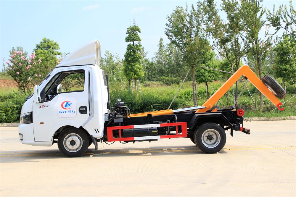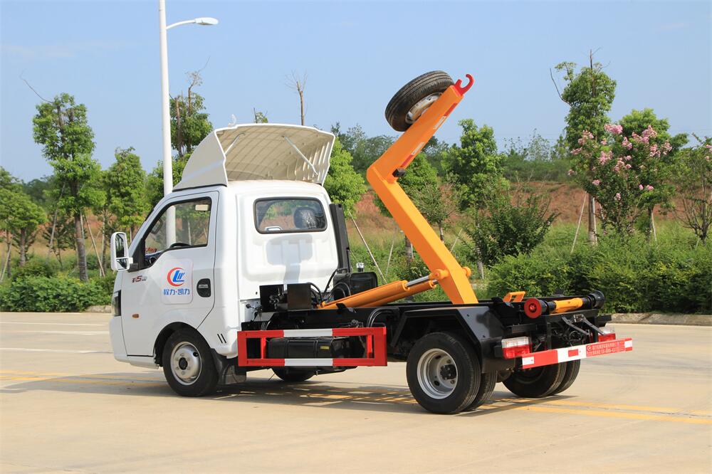 勾臂式垃圾車(車廂可卸式垃圾車)介紹: 車廂可卸式垃圾車又叫拉臂式垃圾車,是一種采用高新設(shè)計可伸縮的鉤臂,實現(xiàn)垃圾廂的二次吊裝,自吊上放下,可自行傾倒垃圾的環(huán)衛(wèi)設(shè)備。 拉臂式垃圾車結(jié)構(gòu)簡單,操作穩(wěn)定方便,裝卸效率高,機械化程度高,節(jié)省人力。鉤臂垃圾車一車可帶多個垃圾廂,在裝卸的運輸過程中可有效地避免二次污染。 拉臂垃圾車采用高新設(shè)計可擺動的鉤臂,垃圾箱由框架、開啟油缸、滑輪、后門和若干加強框架與鋼板焊接而成。調(diào)換貨廂快捷方便,貨廂上帶蓋(倒垃圾時可翻開),鉤臂垃圾車?yán)鴰w可選用碳鋼、不銹鋼材質(zhì)、內(nèi)部采取環(huán)氧樹脂防腐處理,改裝部分與原車底盤為可分離式,維修方便且保持了原車的機動性及行駛性能。
