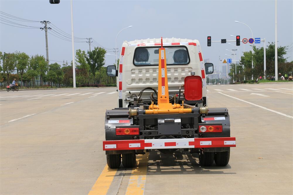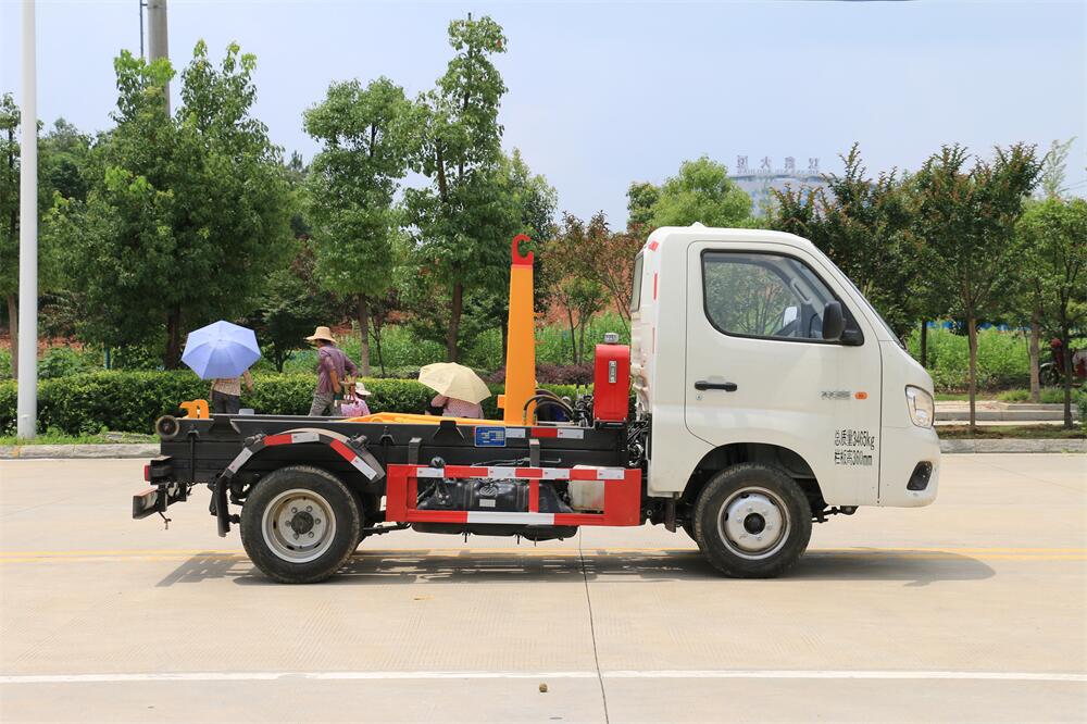 勾臂式垃圾車(chē)(車(chē)廂可卸式垃圾車(chē))介紹: 車(chē)廂可卸式垃圾車(chē)又叫拉臂式垃圾車(chē),是一種采用高新設(shè)計(jì)可伸縮的鉤臂,實(shí)現(xiàn)垃圾廂的二次吊裝,自吊上放下,可自行傾倒垃圾的環(huán)衛(wèi)設(shè)備。 拉臂式垃圾車(chē)結(jié)構(gòu)簡(jiǎn)單,操作穩(wěn)定方便,裝卸效率高,機(jī)械化程度高,節(jié)省人力。鉤臂垃圾車(chē)一車(chē)可帶多個(gè)垃圾廂,在裝卸的運(yùn)輸過(guò)程中可有效地避免二次污染。 拉臂垃圾車(chē)采用高新設(shè)計(jì)可擺動(dòng)的鉤臂,垃圾箱由框架、開(kāi)啟油缸、滑輪、后門(mén)和若干加強(qiáng)框架與鋼板焊接而成。調(diào)換貨廂快捷方便,貨廂上帶蓋(倒垃圾時(shí)可翻開(kāi)),鉤臂垃圾車(chē)?yán)鴰w可選用碳鋼、不銹鋼材質(zhì)、內(nèi)部采取環(huán)氧樹(shù)脂防腐處理,改裝部分與原車(chē)底盤(pán)為可分離式,維修方便且保持了原車(chē)的機(jī)動(dòng)性及行駛性能。