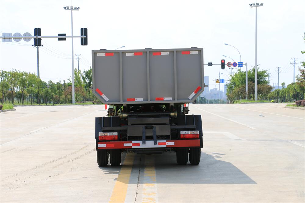 勾臂式垃圾車(車廂可卸式垃圾車)介紹: 車廂可卸式垃圾車又叫拉臂式垃圾車,是一種采用高新設計可伸縮的鉤臂,實現(xiàn)垃圾廂的二次吊裝,自吊上放下,可自行傾倒垃圾的環(huán)衛(wèi)設備。 拉臂式垃圾車結構簡單,操作穩(wěn)定方便,裝卸效率高,機械化程度高,節(jié)省人力。鉤臂垃圾車一車可帶多個垃圾廂,在裝卸的運輸過程中可有效地避免二次污染。 拉臂垃圾車采用高新設計可擺動的鉤臂,垃圾箱由框架、開啟油缸、滑輪、后門和若干加強框架與鋼板焊接而成。調(diào)換貨廂快捷方便,貨廂上帶蓋(倒垃圾時可翻開),鉤臂垃圾車垃圾廂體可選用碳鋼、不銹鋼材質(zhì)、內(nèi)部采取環(huán)氧樹脂防腐處理,改裝部分與原車底盤為可分離式,維修方便且保持了原車的機動性及行駛性能。