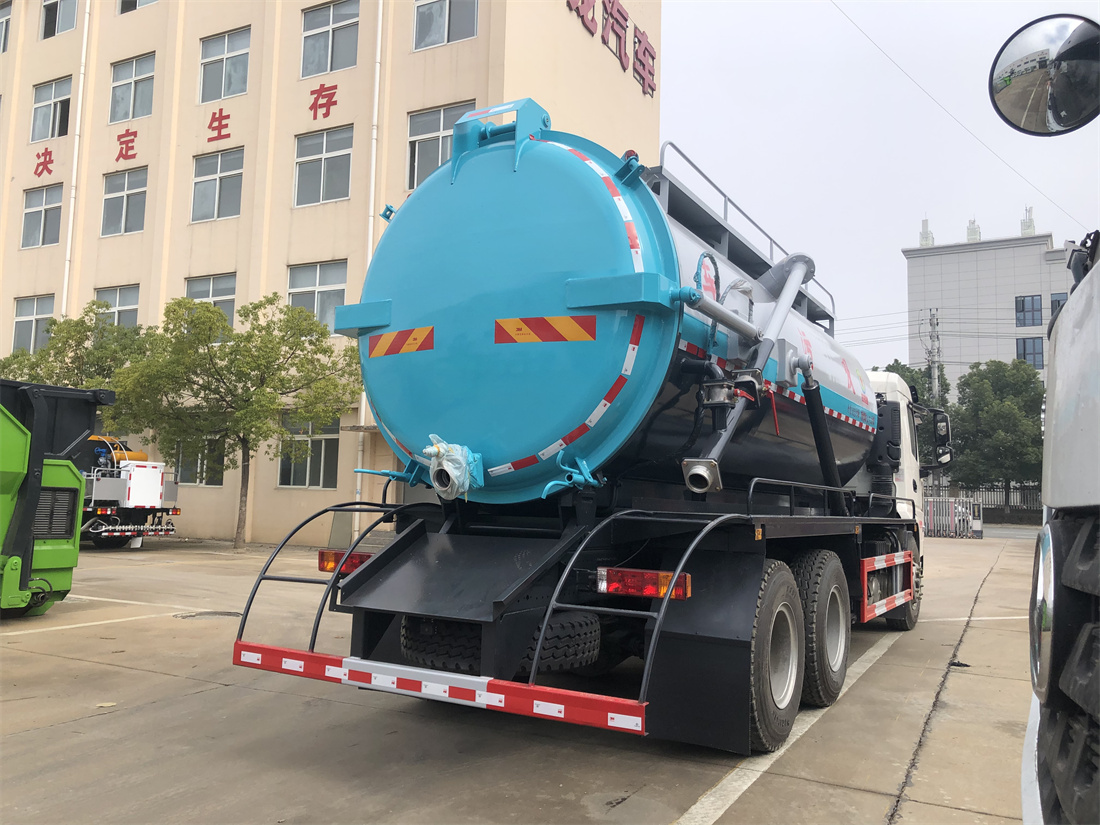 5.液壓舉升自卸功能,便于將各種污物傾倒干凈,后罐門可以液壓啟動開啟,便于清理罐體內的沉積物,凝固物及對罐體內部進行維修、保養,液壓取力增強了系統的穩定性。