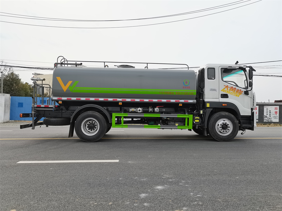 上裝配置:罐體有限容積11.07立方,罐體實際容積14.4方,罐體鋼材厚度5mm,采用大流量水泵60-90,基本灑水功能前沖、后灑、側(cè)噴、工作平臺帶消防高炮(可調(diào)節(jié)成霧狀、直柱狀)、罐體兩側(cè)炮筒、可泵進泵出,帶兩根抽水軟管。后平臺可選裝霧炮裝置