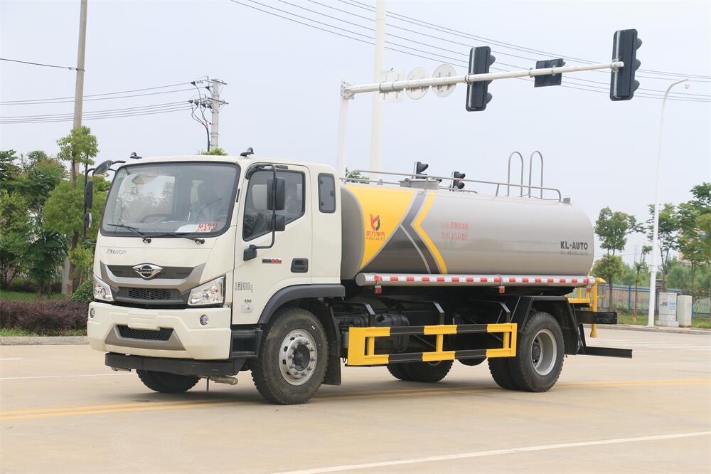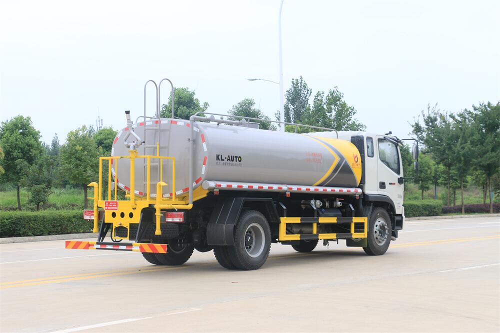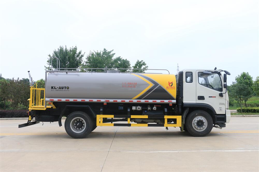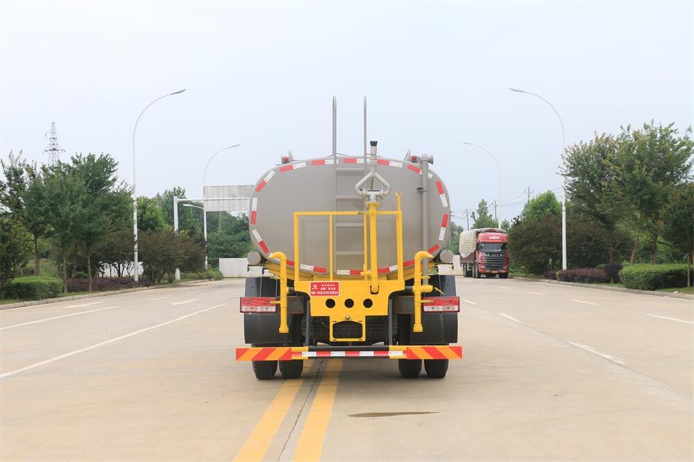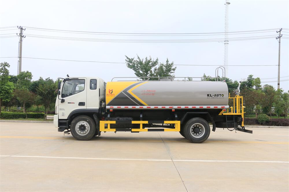 灑水車前裝有鴨形噴嘴或圓頭沖嘴,后面裝有圓柱開灑水噴嘴或蓮蓬頭噴嘴,后部有一工作平臺(tái),裝配有水炮。后部還可裝8個(gè)噴嘴(選裝)。