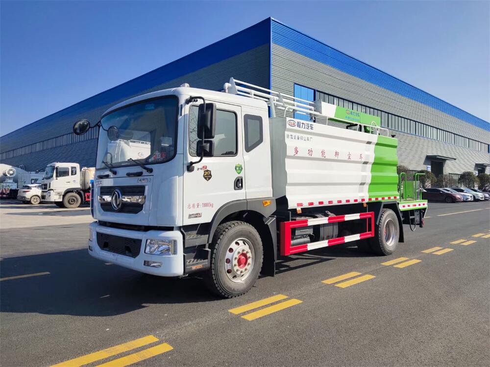 東風D9多功能鐵路抑塵車,整車型號:CL5186TDY6YC,底盤型號:EQ1185LJ9CDE,總質量:18000KG,整備質量(車輛自重):9660 KG,額定載質量:(上戶噸位):8145KG,4500軸距,大容積罐體滿載15立方(罐內采用環氧玻璃鱗片防腐處理質保兩年)、新穎的罐體設計使車輛行駛更穩定、使用壽命更長,大容量方型水箱,前沖、后灑、側噴、高炮,抑塵噴灑桿(帶旋轉升降功能,液壓升降、液壓旋轉)。噴灑桿離地3.5-5.6米 、180°旋轉,后部平臺帶8KW柴油發電機組、電控箱。整車采用全智能駕駛室觸摸屏及遙控操作:車輛噴淋系統、攪拌、旋轉臂、加熱等等功能。灑水功能采用主機動力。旋轉、升降、攪拌采用發電機組動力,配電箱預留外接電源接頭套。噴淋系統加裝單車流量計(用于計量抑塵劑噴灑量。)