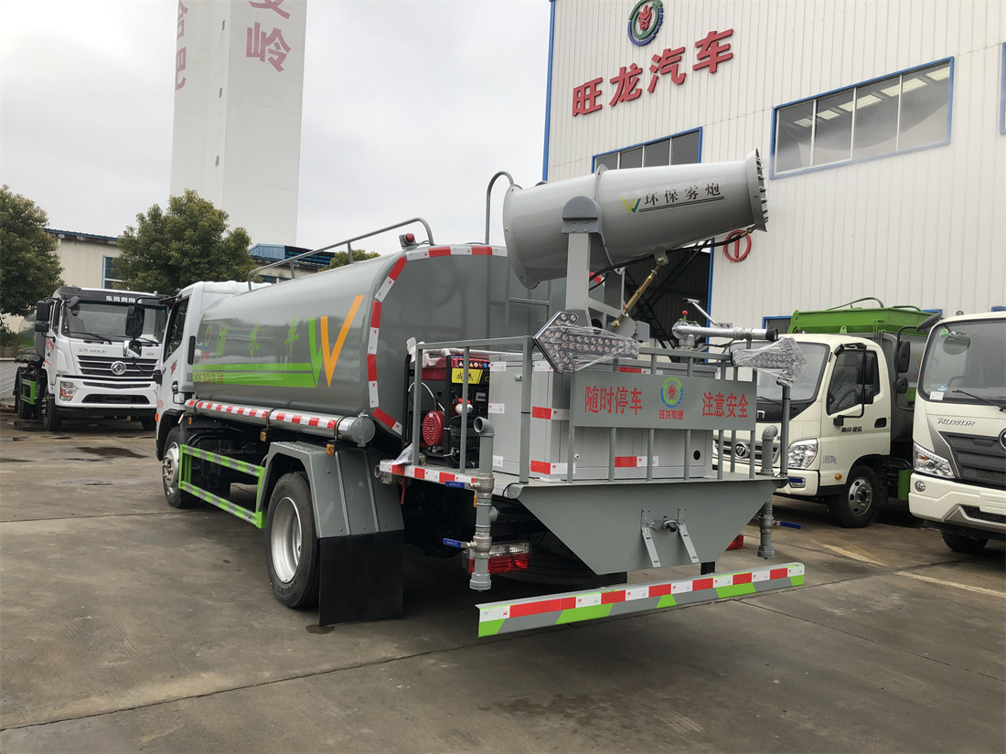 上裝配置:罐體容積 9立方,風送式霧炮機組30米,40米選擇,罐體采用國標Q235碳鋼材質(zhì),罐體厚度4MM,前后封頭5MM加厚型,罐體內(nèi)雙層隔板具有防波蕩作用,以減輕汽車行駛時罐內(nèi)液體沖擊;灑水車整車及外形尺寸嚴格按照**機動車公告制作而成;裝配大功率專用灑水泵,前沖、后灑、側(cè)噴、后平臺帶綠化灑水炮,灑水炮可全方位旋轉(zhuǎn),可連續(xù)調(diào)成直沖狀、大雨、小雨、毛毛雨;配消防接口,自流閥,濾網(wǎng),帶自吸自排功能。前封頭帶水位計,后平臺主管路帶1寸澆花接口,后爬梯,帶1個消防接頭,帶1個自流閥,1個過濾裝置,其余標配。