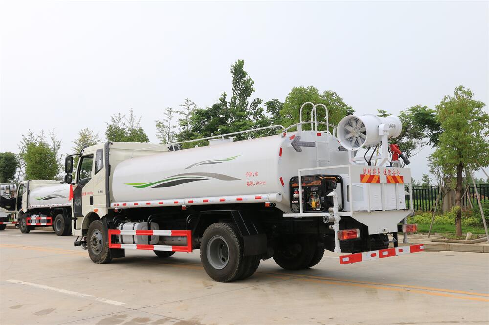 上裝配置:罐體容積 15立方,風送式霧炮機組30米,40米選擇,罐體采用國標Q235碳鋼材質,罐體厚度4MM,前后封頭5MM加厚型,罐體內雙層隔板具有防波蕩作用,以減輕汽車行駛時罐內液體沖擊;灑水車整車及外形尺寸嚴格按照**機動車公告制作而成;裝配大功率專用灑水泵,前沖、后灑、側噴、后平臺帶綠化灑水炮,灑水炮可全方位旋轉,可連續調成直沖狀、大雨、小雨、毛毛雨;配消防接口,自流閥,濾網,帶自吸自排功能。前封頭帶水位計,后平臺主管路帶1寸澆花接口,后爬梯,帶1個消防接頭,帶1個自流閥,1個過濾裝置,其余標配。