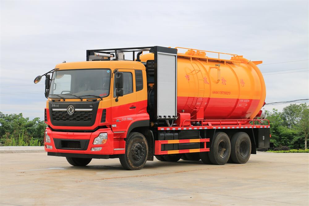 上裝配置:罐體容積為 22 立方(水污可自由 分配),罐體 8mm 厚,封頭 8mm 厚,水罐、污 罐可互通,用 100 球閥**開關(guān);清洗部份采 用品孚高壓泵,壓力 20Mpa,流量 330L/min, 配 80 米直徑 25 高壓管帶液壓卷盤;吸污部份 采用濰柴420馬力副發(fā)動(dòng)機(jī)帶山東SK-42水循 環(huán)泵(副發(fā)自帶),吸污罐帶舉升,尾部加裝 一個(gè) 600mm 快開,罐體后尾部一個(gè) DN150 不銹 鋼排污口,一個(gè) DN150 不銹鋼偷排,兩個(gè) DN100 吸污球閥帶出口盤,一個(gè)視污窗,兩根 10m 吸 污管,一套陰陽(yáng)端,壓力表,防溢閥,箭頭燈, 工具箱,淋管裝置,高壓泵帶氣吹水,配一個(gè) 9 公斤水雷噴頭,另帶一個(gè) 80 公分手持洗車 噴頭。
