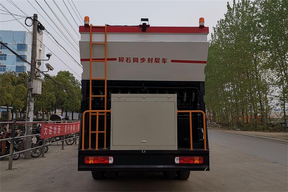 前四后八同步碎石封層車主要有瀝青灑布系統、石料撒布系統、電氣操作系統等組成。