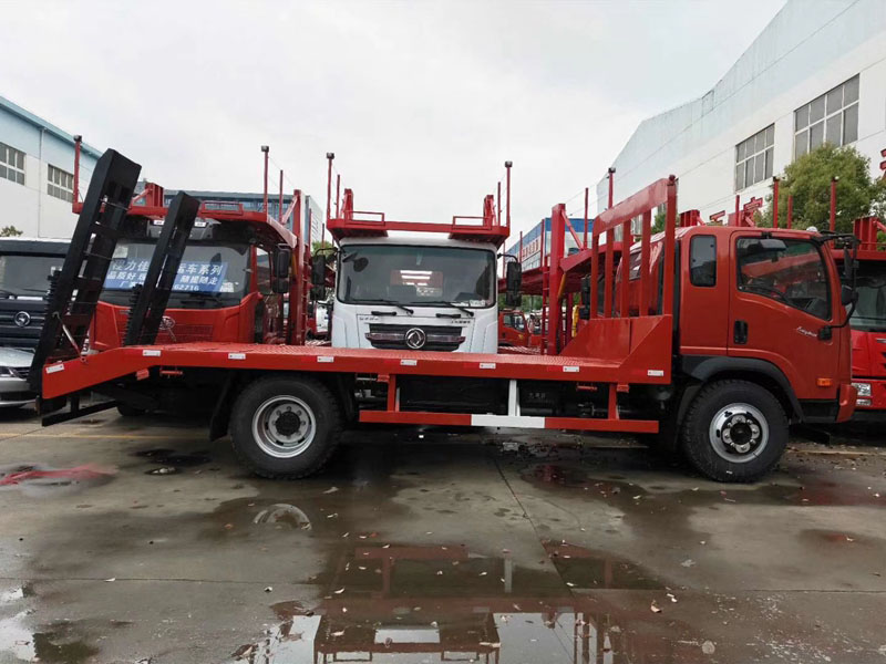 上裝采用5毫米花紋鋼板,120*120方鋼做橫梁,加強型雙爬梯.可定做液壓爬梯,可承載15噸以下挖機。也可加裝絞盤,可拉事故車等。公告拓展有雙節爬梯公告,可做雙節爬梯拉叉車,壓路機等鉆井設備!
