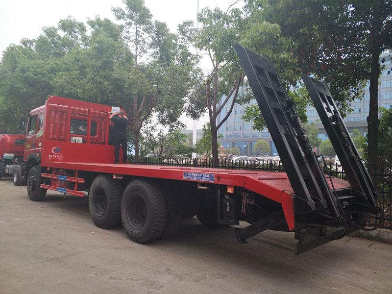 上裝采用八毫米花紋鋼板,120套100方管,加強雙簧爬梯,可拉25噸以下挖機。