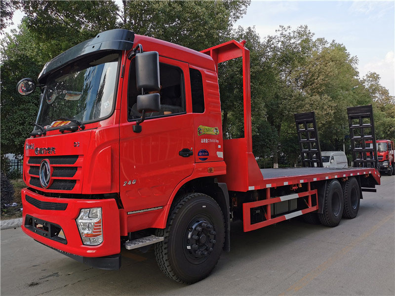 上裝采用八毫米花紋鋼板,120套100方管做橫梁,加強雙簧爬梯,可拉25噸-30噸以下挖機。