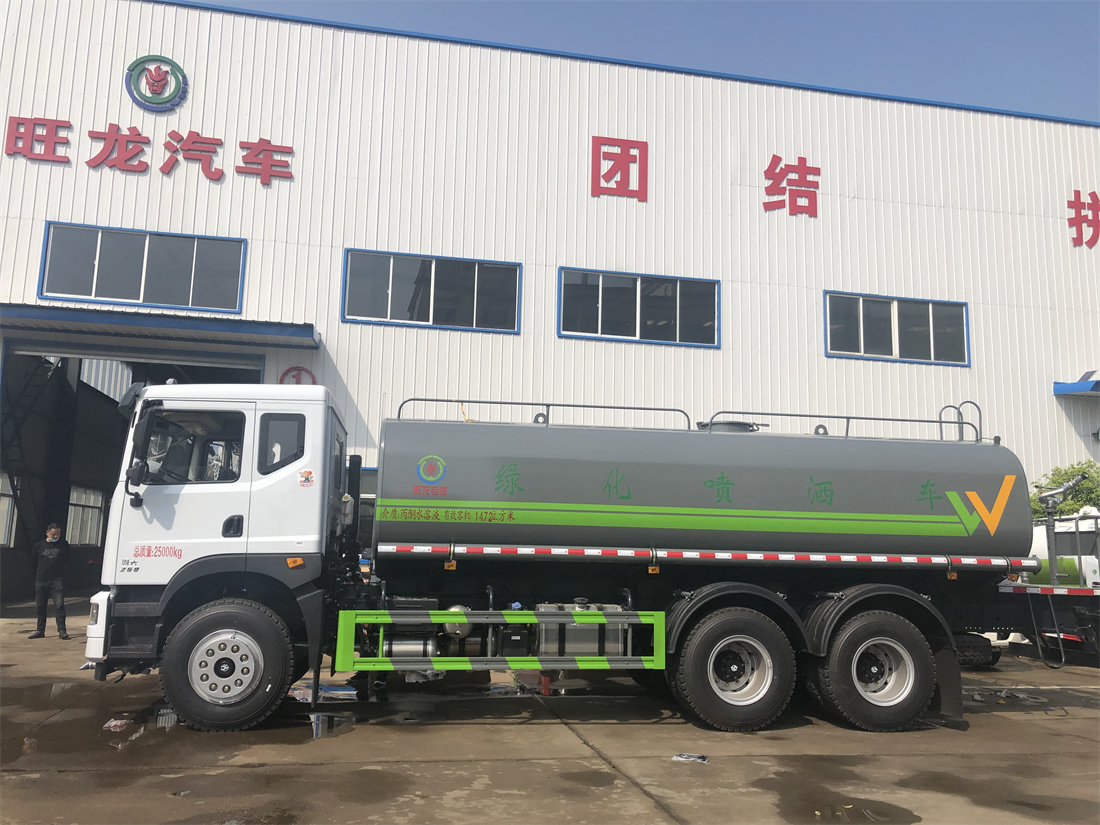 主要由發動機帶動變速箱,變速箱上安裝的取力器帶動灑水泵,灑水泵產生動力,將罐體內部的液體通過管網噴灑出去。工作范圍:自吸高度:≥7m,灑水寬度:≥14m,**大射程:≥28m;可調節成柱狀,射程≥28m;也可調節成霧狀,射程≥5m。