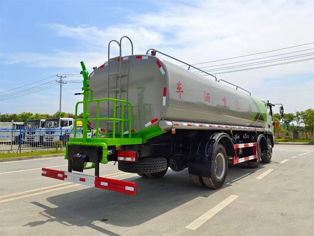 灑水車前裝有鴨形噴嘴或圓頭沖嘴,后面裝有圓柱開灑水噴嘴或蓮蓬頭噴嘴,后部有一工作平臺,裝配有水炮。后部還可裝8個噴嘴(選裝)。